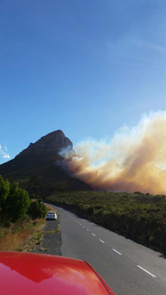 I think every fire-truck in Cape Town was there and they had 2-3 choppers bringing water from the sea too, but they were being buffetted and thrown around in the wind, so I think it was quite dangerous...